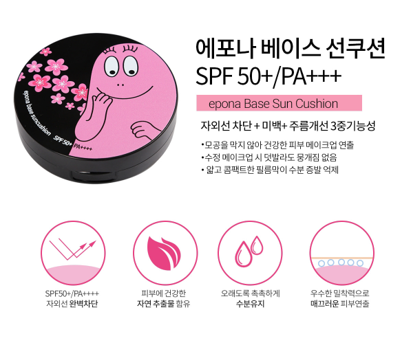 EPONA Barbapapa Base Sun Cushion Korean Beauty Sunscreen Natural Essence Sun Block