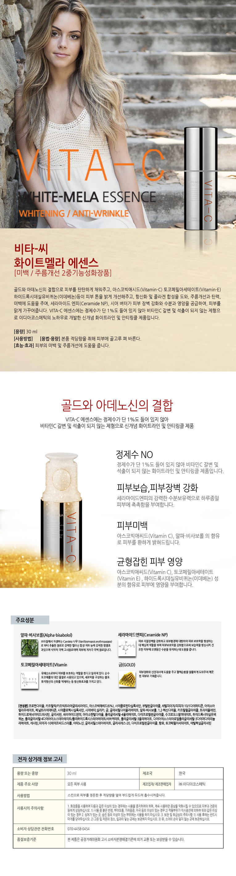 Korean Beauty Skin Care Edia Cosmetic Vita-C White Mela Essence Whitening Nourishing Skin Essence