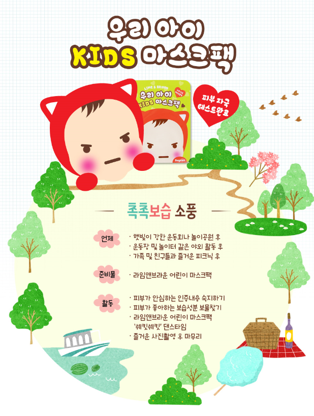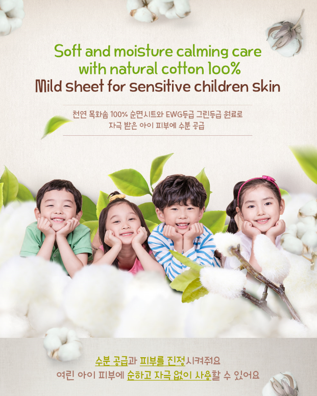 - Supply moisture and nourishments to the skin - Gently moisturizes the skin with fresh, moist feeling use - Cute cat-shaped sheets bring about the children's appeal - Used 100% natural cotton swabs do not irritate the children skin (OEKO-TEX 1st grade / LOHAS certified fabric) - Casual daily care prescription for effective moisture and moisturizing delivery - Natural extracts such as machihyun extract, sunflower seed oil, fig extract, rosehip oil, shea butter, etc., supply nourishment and moisture to child skin - Skin irritation test completed