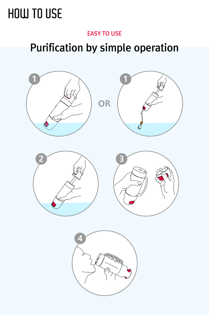 Prepare for emergency situations such as typhoons, earthquakes, fire and other disasters, natural or manmade. While there may be plenty of water, it may not be drinkable. Even if not fatal, water contaminated with bacteria and/or particulates, when consumed, can make one ill. Add the included tube for hard to reach water sources.