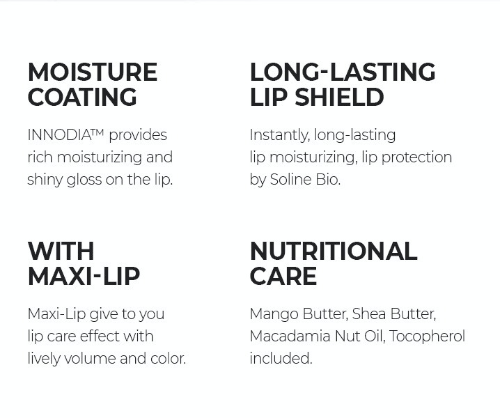 Moisture Coating : INNODIA provides rich moisturizing and shiny gloss on the lip.