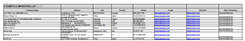 All of the Companies listed in this List of Importers are active buyers and importers.They are Confirmed opt-in (COI) contactswith updated import demands for the following cosmetic products;
